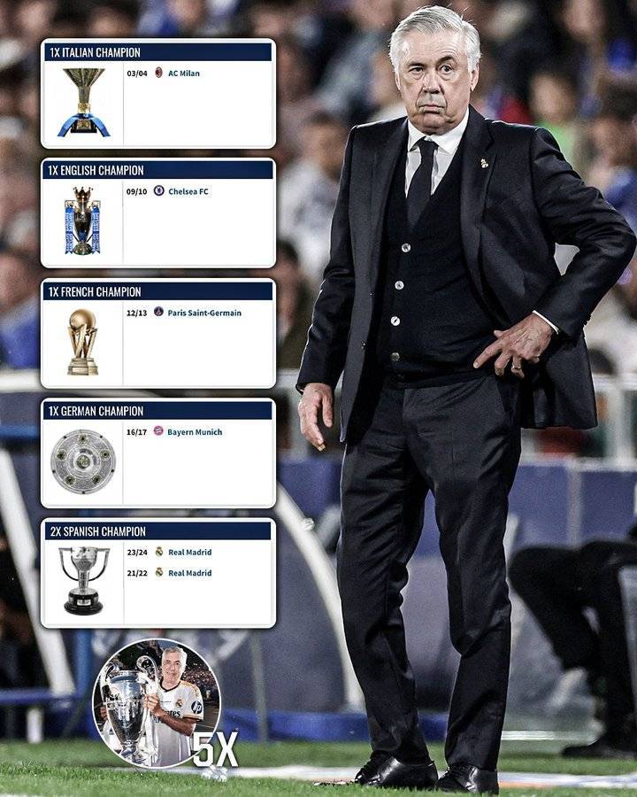 安切洛蒂是首位也是唯一一位在欧洲五大联赛全部赢得过冠军的主教练。