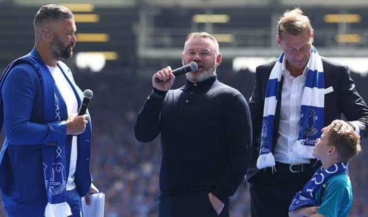 上周日,埃弗顿以2-0战胜南安普顿后,鲁尼与彼得-里德、格雷姆-夏普和邓肯-弗格森等60多位前俱乐部球员一起参加了球场上的游行活动。