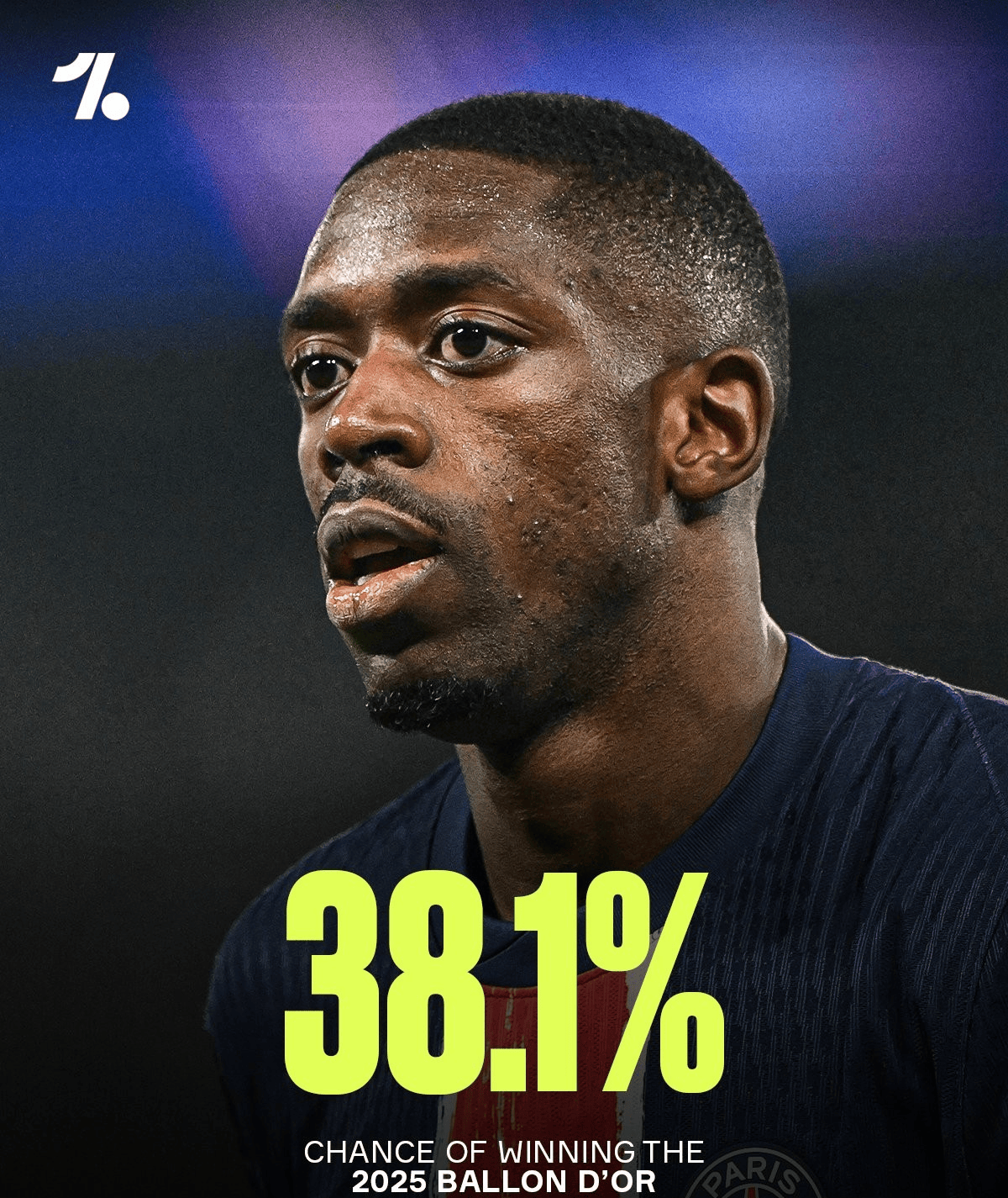 ONEFOOTBALL的金球奖预测数据显示,进入欧冠决赛并有可能带领巴黎捧起队史首个三冠的登贝莱,获得金球的几率接近四成。而唯一能追赶他的,是已随巴萨拿下国内三冠的17岁天才亚马尔。