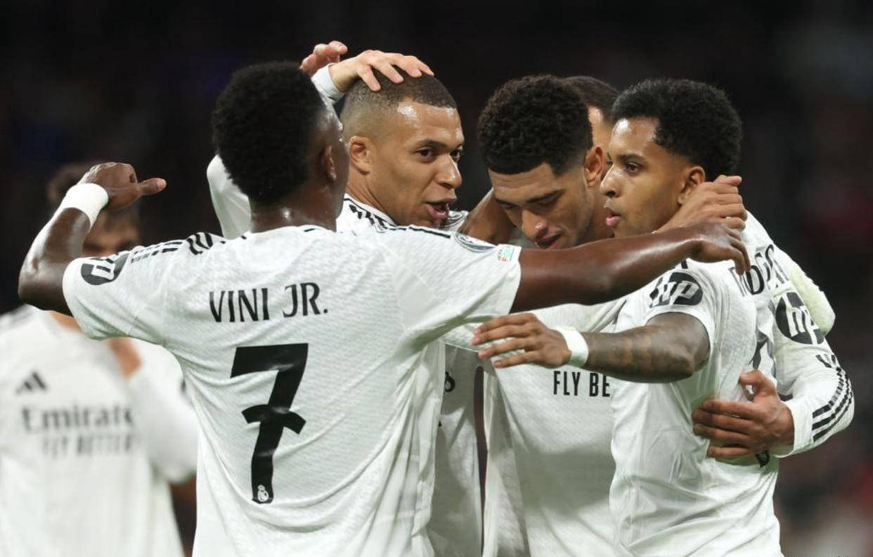 下半场第49分钟,贝林厄姆在外围的劲射被扑出后,迅速补射得手,帮助皇马将比分扳为2-2。第74分钟,罗德里戈制造任意球,弗兰-加西亚的防守失误让姆巴佩得以抽射破门,皇马以3-2完成逆转。